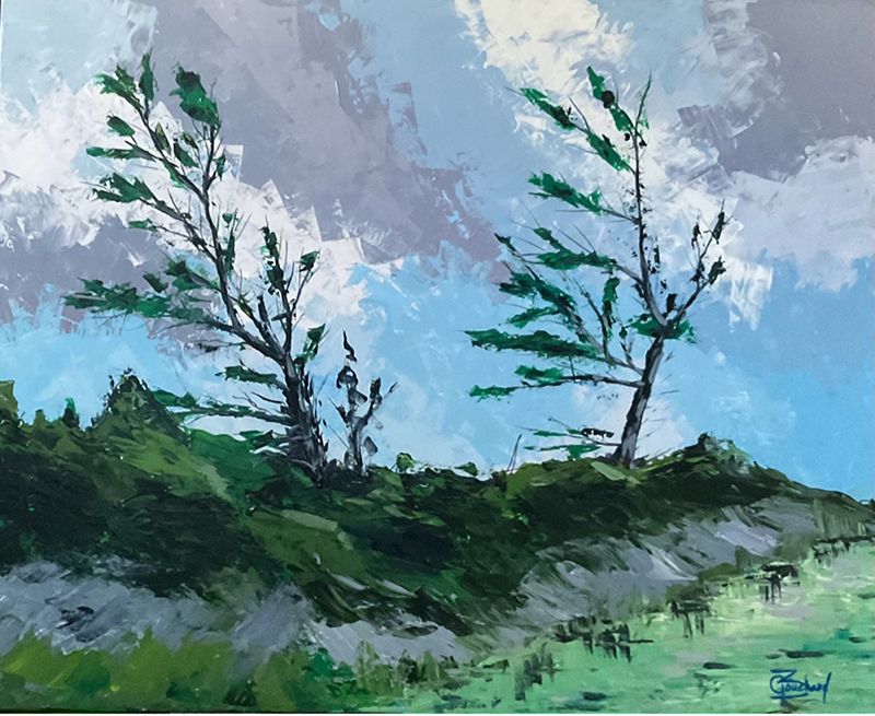 Gaston Bouchard a commencé à peindre à la retraite, pour mettre sur toile ce qui l’a accompagné tout au long de sa vie, soit la nature parfois sauvage, ses paysages et la féerie de ses plus beaux sites. Ses toiles sont pour la plupart figuratives, ce qui ne l'empêche pas de faire quelques incursions dans l'abstrait, bien qu’impressionniste, ses œuvres s’accrochent à des styles plus modernes. Toutes ces composantes laissent ainsi place à la fantaisie de la personne qui s’approprie l’œuvre.