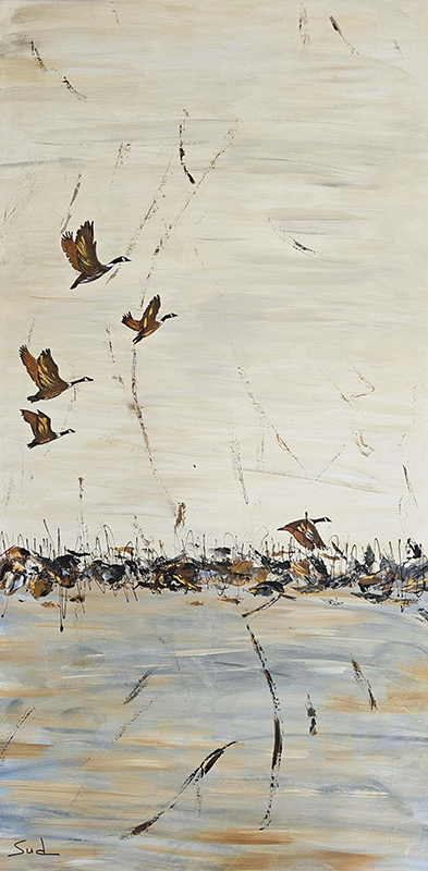 Suzanne Douville utilise différents outils pour la réalisation de ses œuvres. La spatule, le pinceau, le mortier entre autres lui servent à représenter les éléments de la nature. Elle personnalise le vent, le mouvement, elle représente les saisons et surtout elle s'inspire du fleuve et de la vie qui s'y rattache.